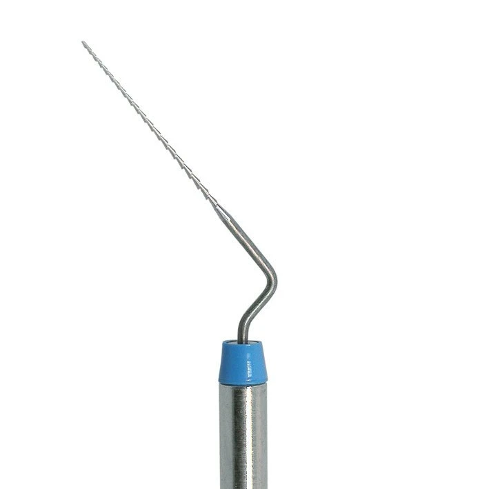Długi, zagięty uchwyt: Gwarantuje pewne prowadzenie narzędzia i maksymalną precyzję podczas zabiegu.