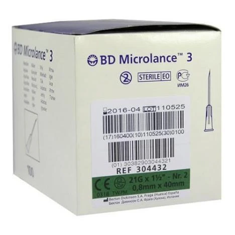 Sterylnie pakowane igły jednorazowego użytku. Opakowanie zawiera 100 sztuk igieł.