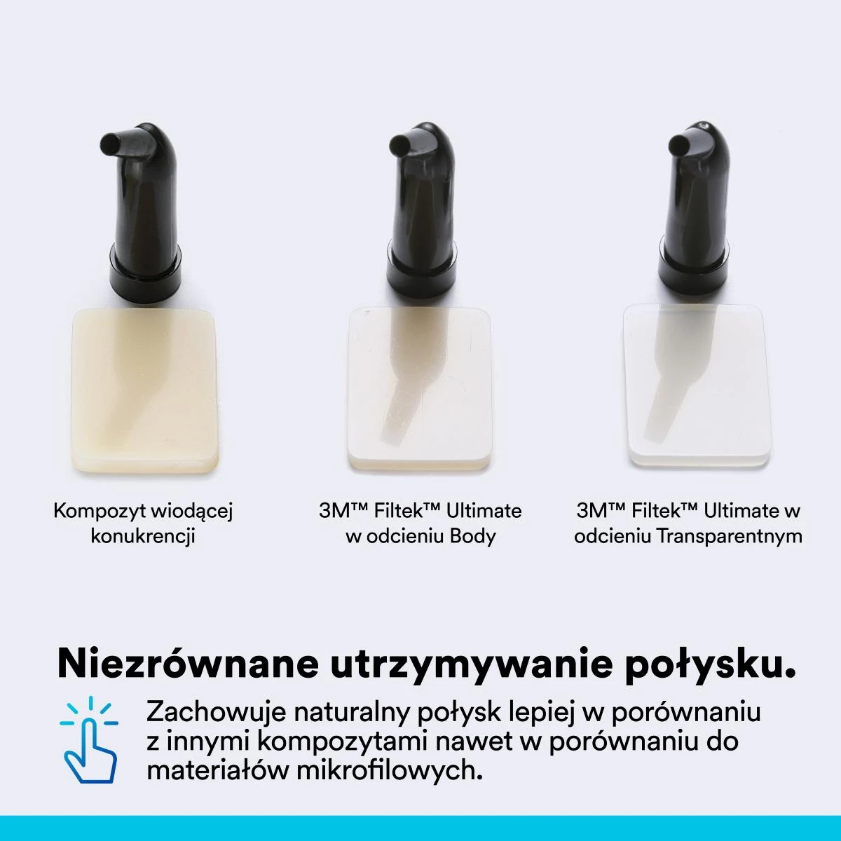 Filtek™ Ultimate to uniwersalny materiał do wypełnień, który spełni indywidualne oczekiwania dzięki 36 odcieniom w 4 przeziernościach.