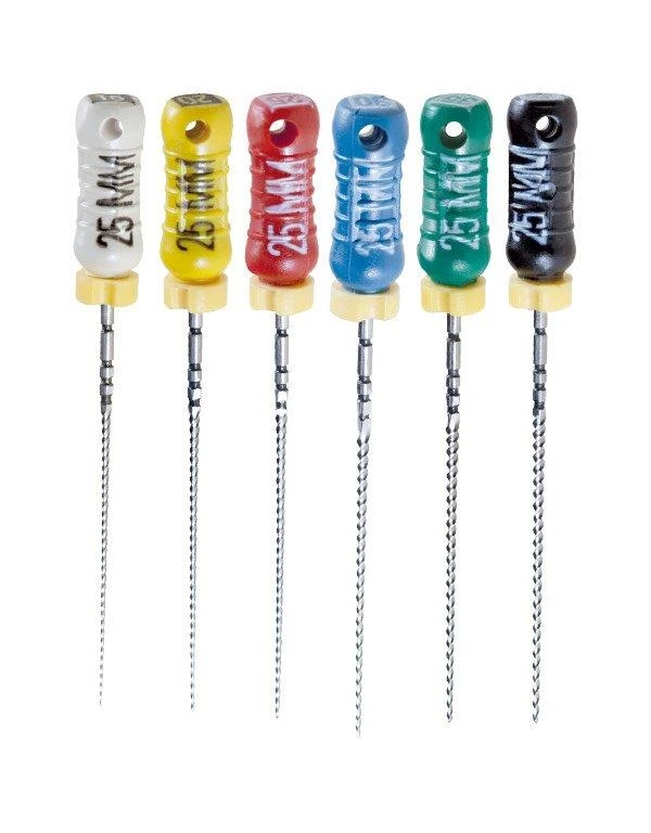 Każdy instrument zaopatrzono w silikonowy ogranicznik oraz kontrastujące w obrazie RTG oznaczenia długości kanału.