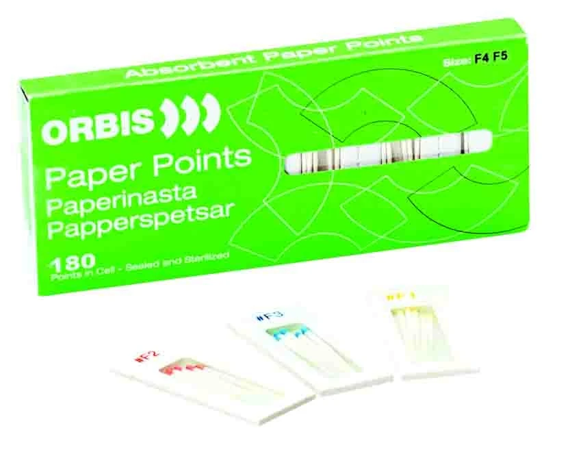 Sączki papierowe do osuszania kanałów korzeniowych.