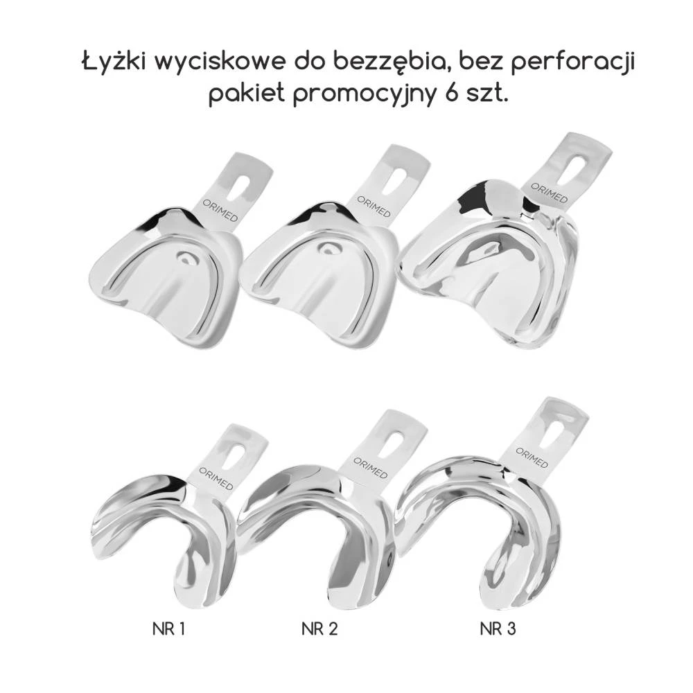 Ori łyżki wyciskowe do bezzębia, bez rantu - zestaw 6szt bez perforacji