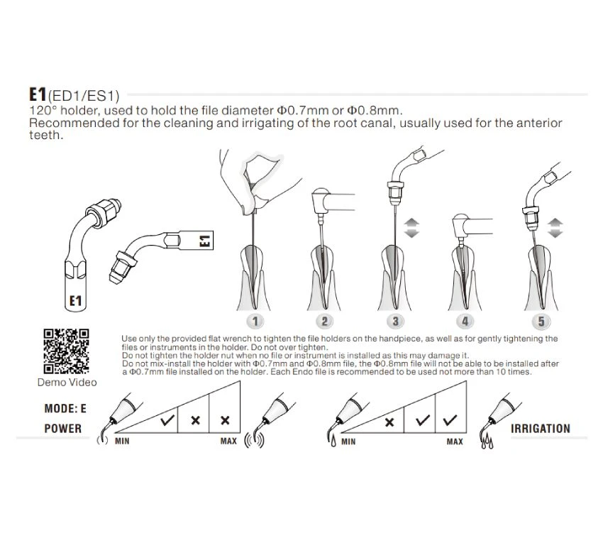 Zastosowanie: endodoncja, aktywacja irygantów, irygacja kanałów w odcinku przednim.