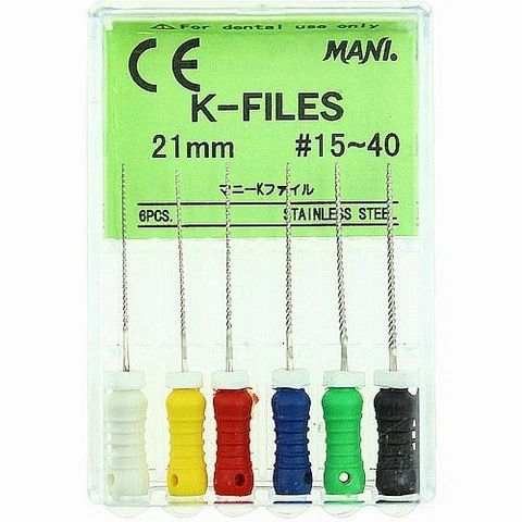 K-FILES – ręczne narzędzia ze stali nierdzewnej do opracowywania kanałów korzeniowych.