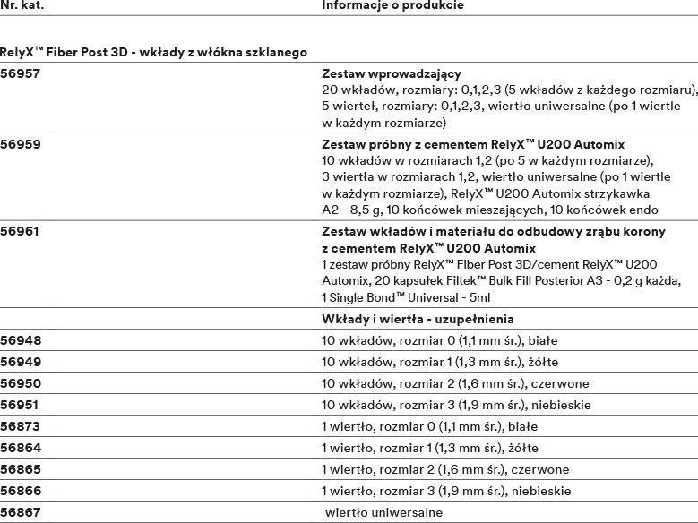 Zestaw wprowadzający RelyX™ Fiber Post 3D zawiera: