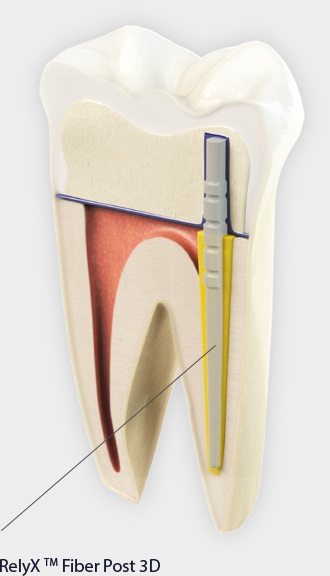 Wkłady z włókien szklanych RelyX™ Fiber Post 3D z makroretencją 3D w części koronowej zapewniają większą retencję mechaniczną do materiału, z którego wykonuje się odbudowę zrębu zęba.