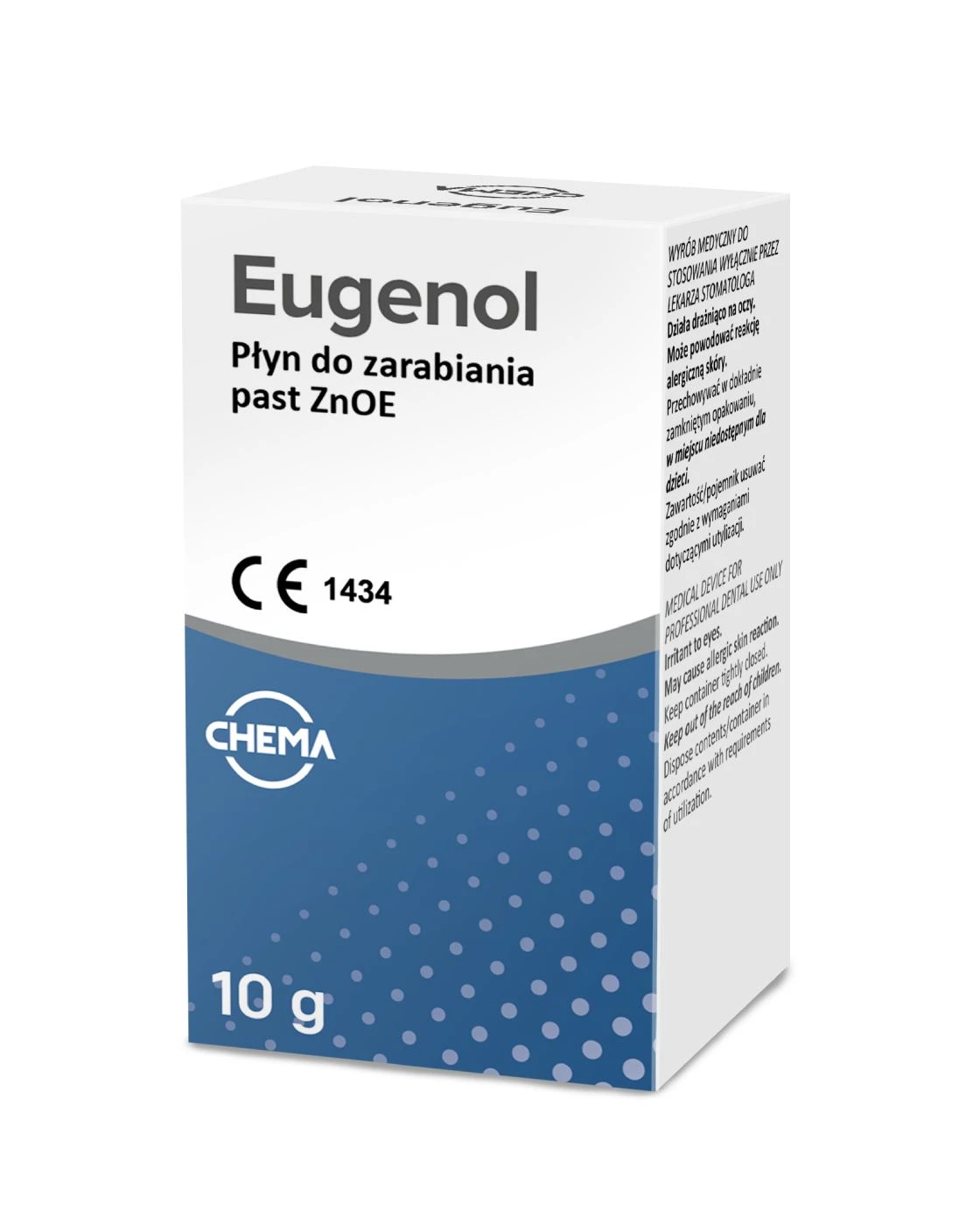 Eugenol 10g CHEMA to wyrób medyczny przeznaczony do użytku w stomatologii.