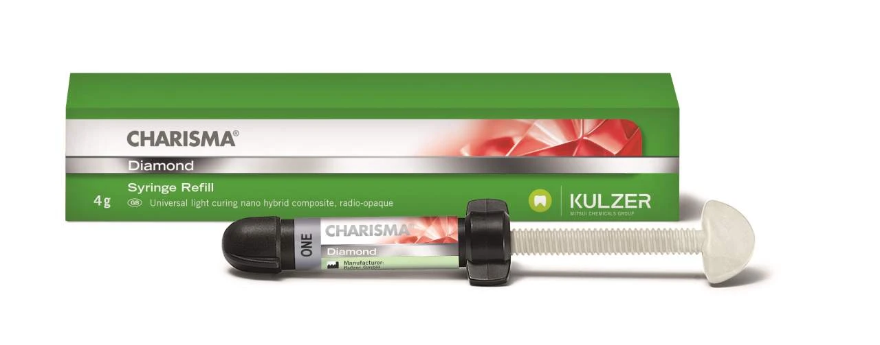Charisma Diamond obejmuje 21 uniwersalnych kolorów, 4 nieprzezierne kolory masy zębinowej oraz 4 kolory masy siecznej.