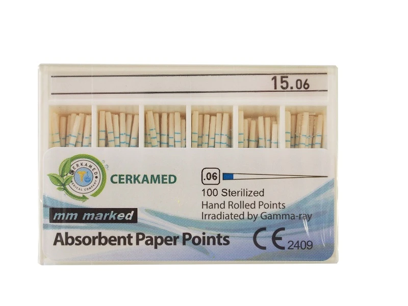 Precyzyjne, sterylne i wysoce absorpcyjne sztyfty papierowe do osuszania kanałów korzeniowych.