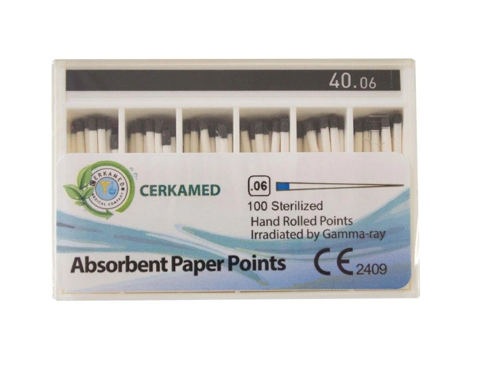 Precyzyjne, sterylne i wysoce absorpcyjne sztyfty papierowe do osuszania kanałów korzeniowych.