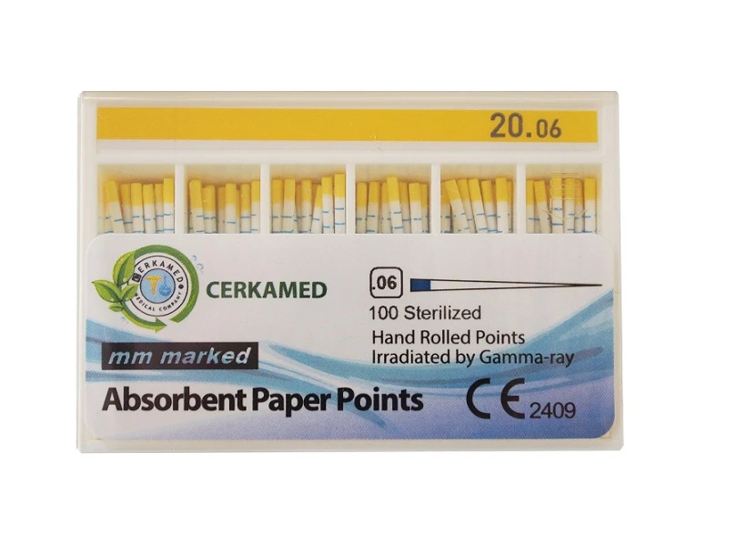 Precyzyjne, sterylne i wysoce absorpcyjne sztyfty papierowe do osuszania kanałów korzeniowych.