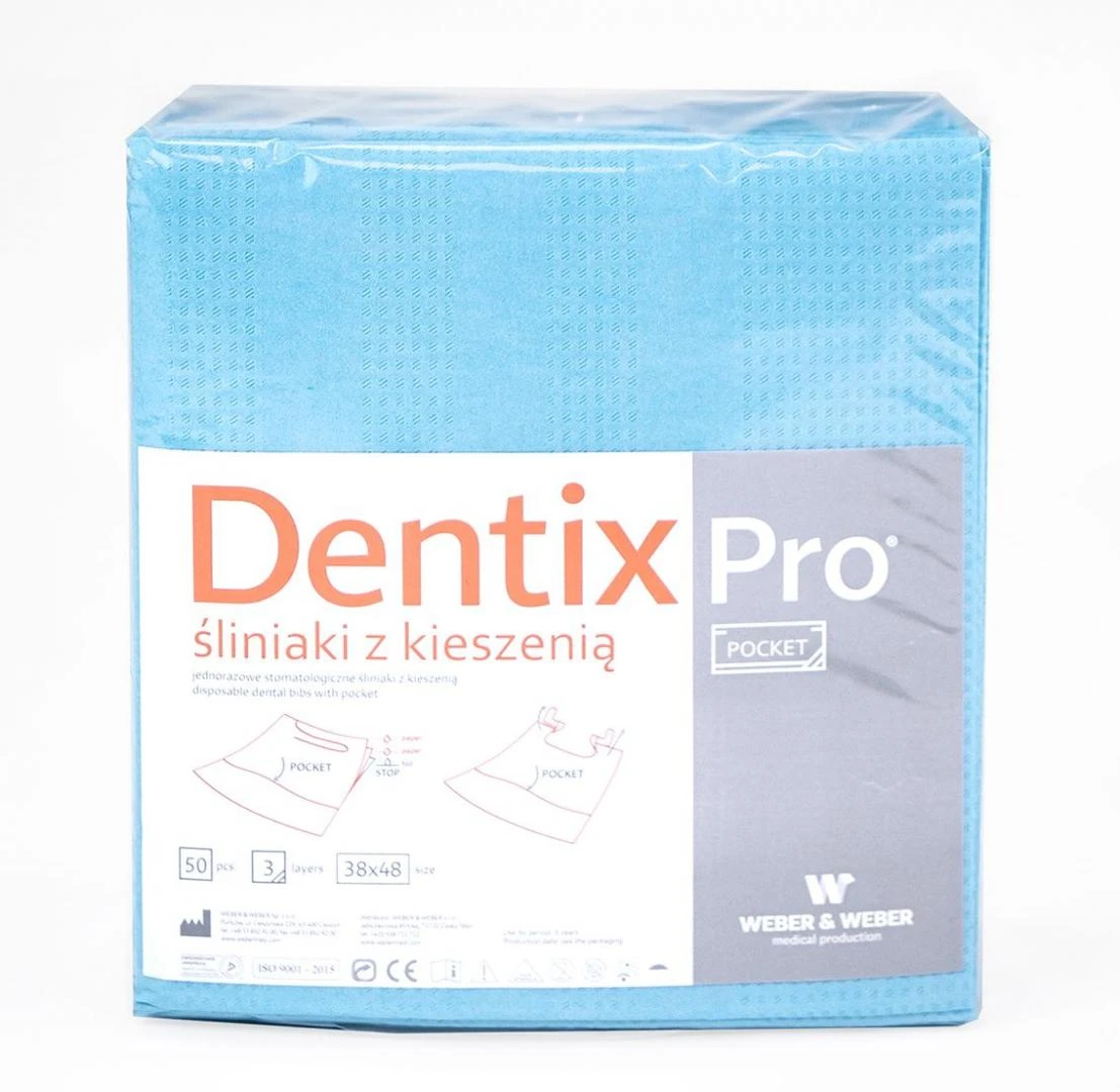 Jednorazowe śliniaki bibułowo-foliowe z kieszenią, wiązane