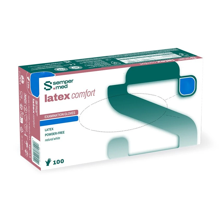 Rękawiczki M lateks bezpudrowe Semper Comfort antyalergiczne 100szt/opak. (lateksowe niepudrowane)