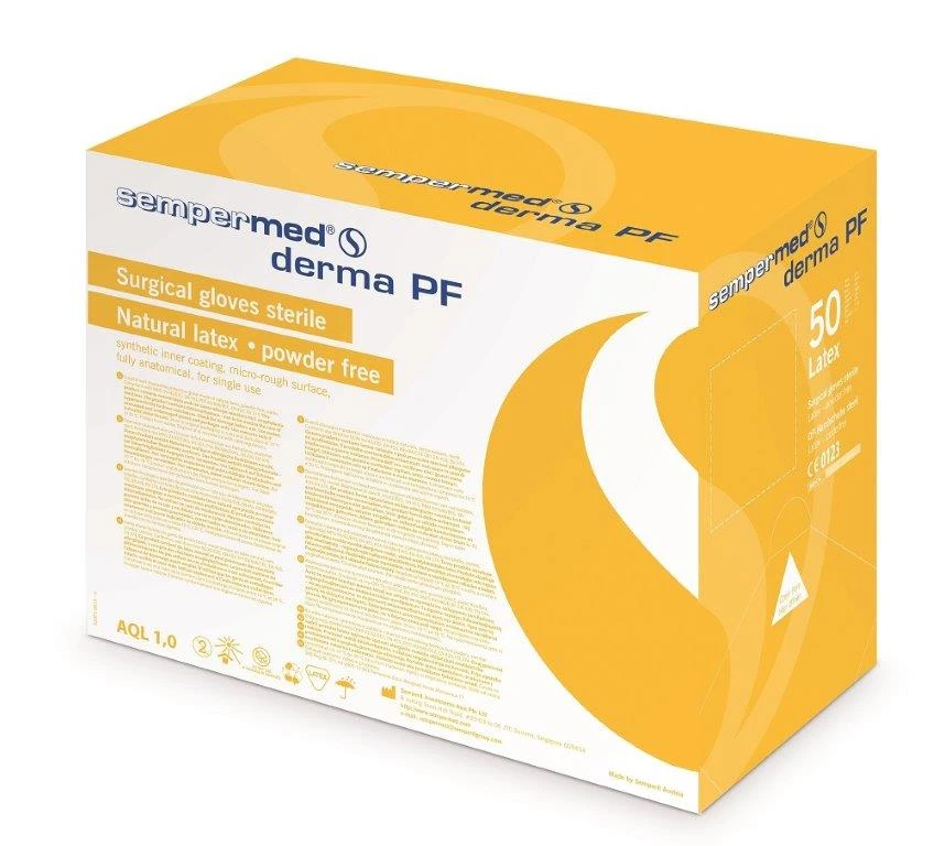Rękawiczki 7,5 sterylne antyalergiczne Semper Derma PF 1 para (niepudrowane) żółte op.