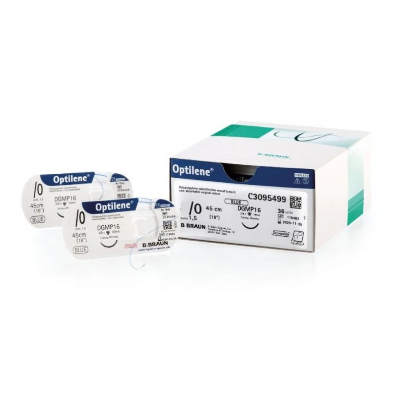 Optilene 6/0 45cm igła 13mm 3/8 koła odwrotnie tnąca kosmetyczna (DSMP13) 36szt/opak. C3090618 szew niewchłanialny polipropylenowy niebieski