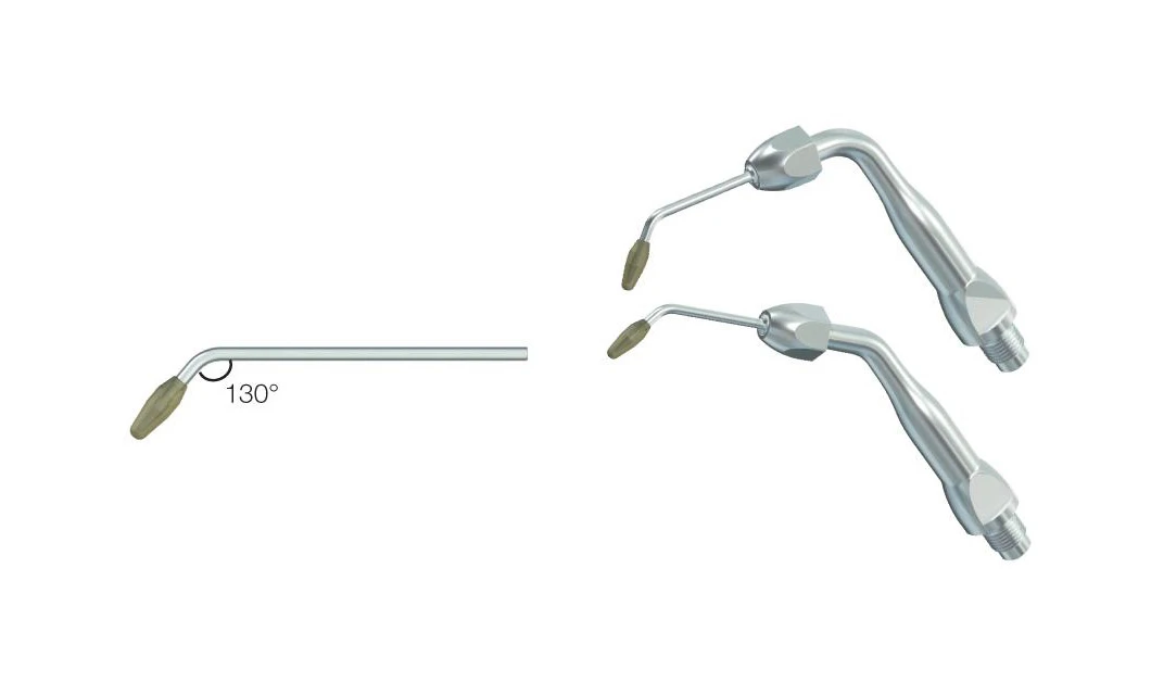 Podwójnie wygięta szyjka umożliwia lepszy pracę w trudno dostępnym odcinku bocznym.