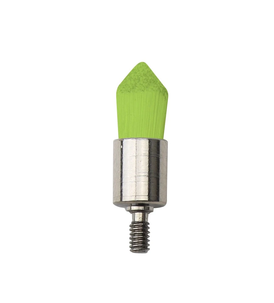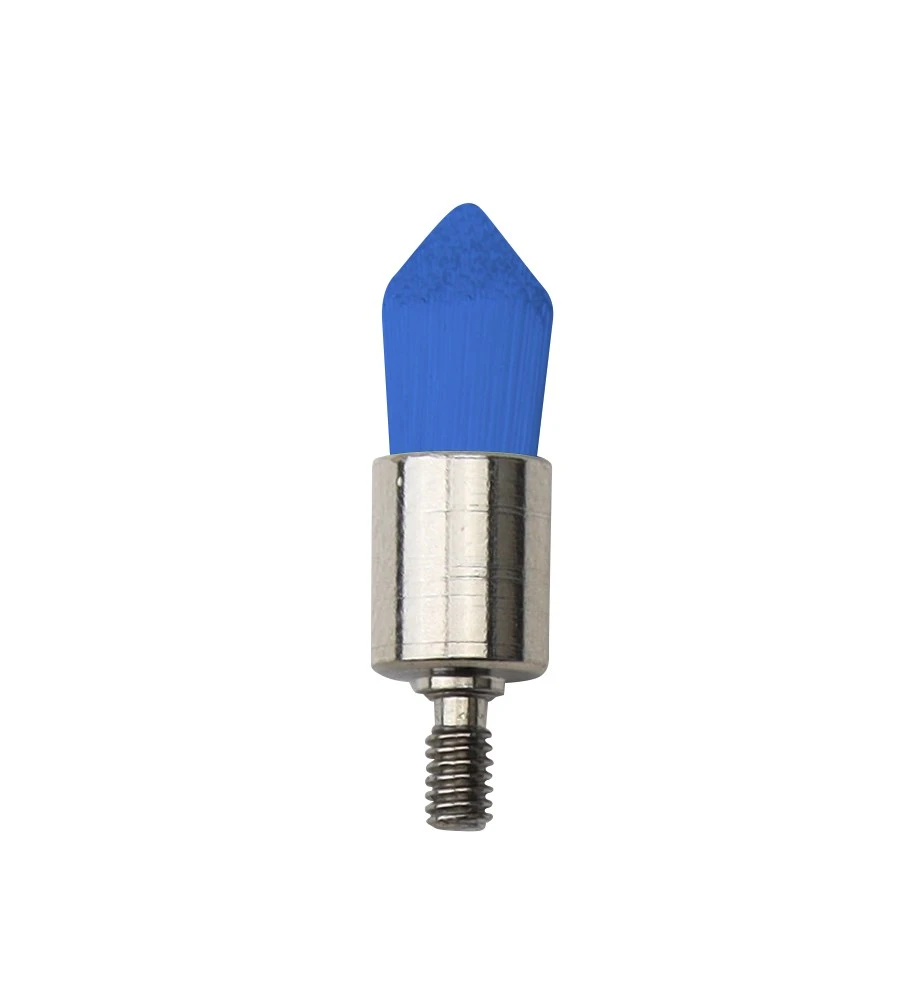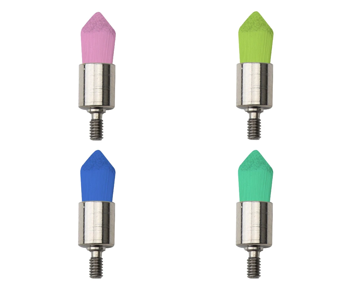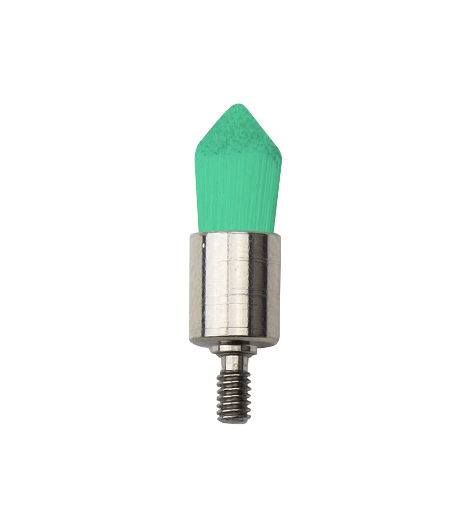 Nylonowe nakręcane szczoteczki polerskie Premium Plus o kształcie płomyka (stożka) pozwalają na precyzyjną pracę w delikatnych obszarach takich jak implanty lub elementy aparatów ortodontycznych. Cechy produktu: