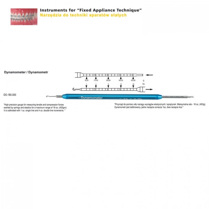 Narzędzie z kalibracją do pomiaru siły naciągów elastycznych i sprężynek.