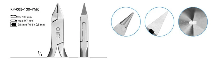 Bardzo delikatna część pracująca pozwala na precyzyjne doginanie końcówek klamer.