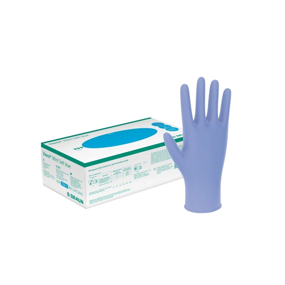 Rękawiczki M nitryl Braun Vasco Soft Blue 200 szt. miękkie niebieskie