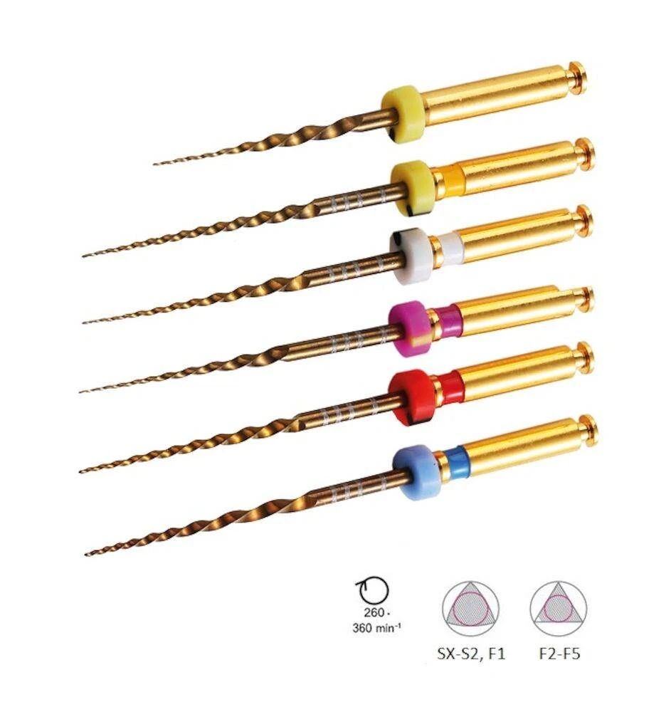Orbis Golden Taper to progresywny system pilników, w skład którego wchodzą pilniki sterylne 19 mm SX, 21 mm, 25 i 31 mm o kształcie F1-F5.