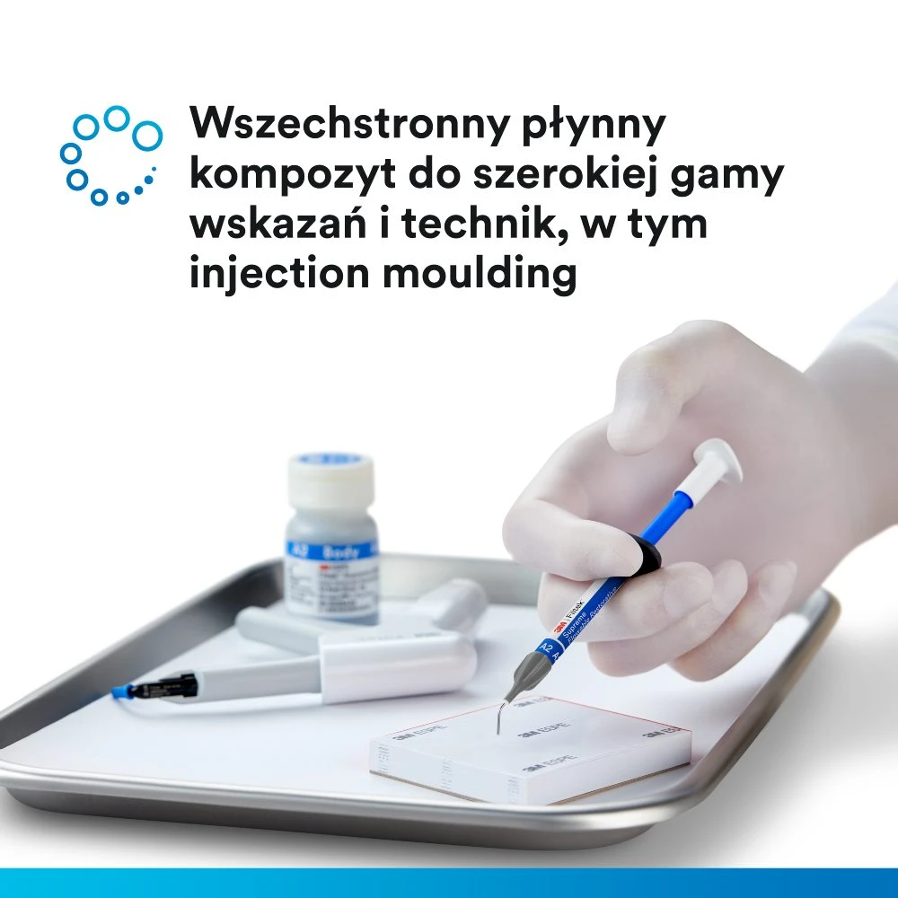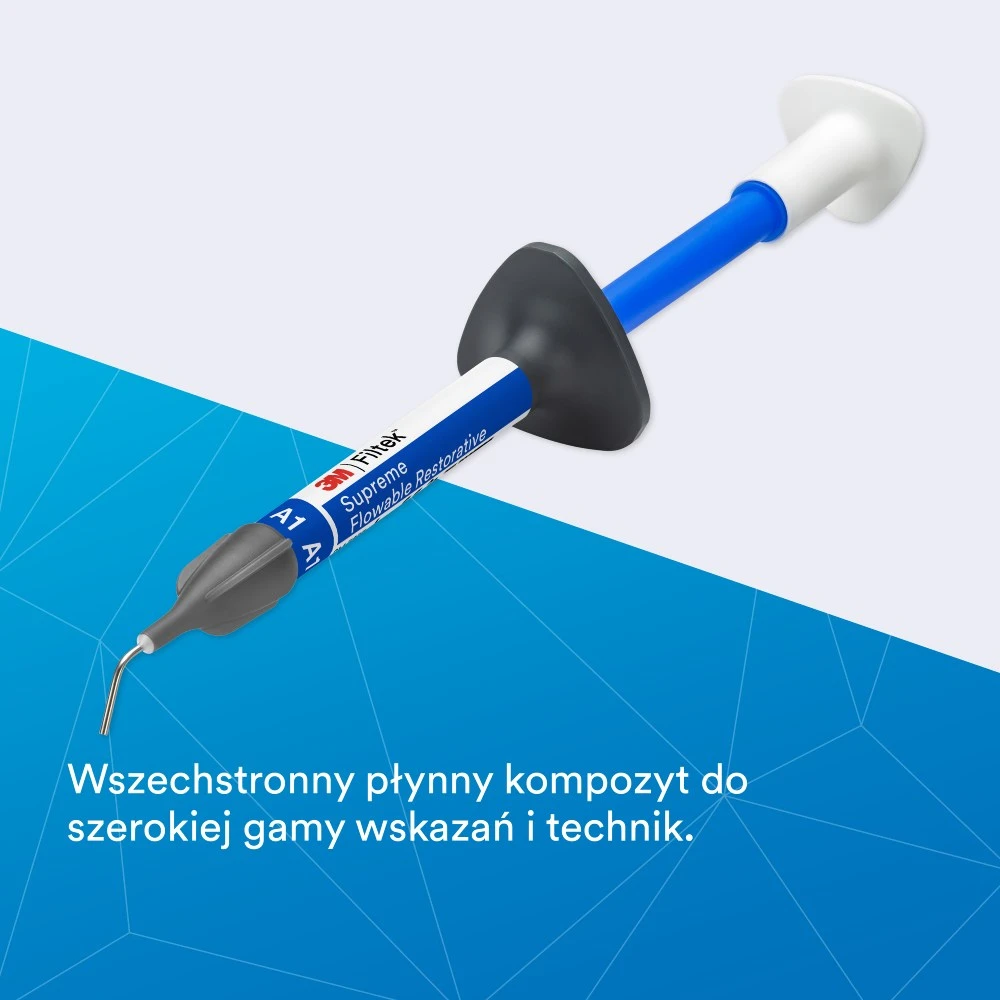 3M™ Filtek™ Supreme Flow to płynny kompozyt o innowacyjnej konstrukcji strzykawki, dzięki której praktycznie wyeliminujesz