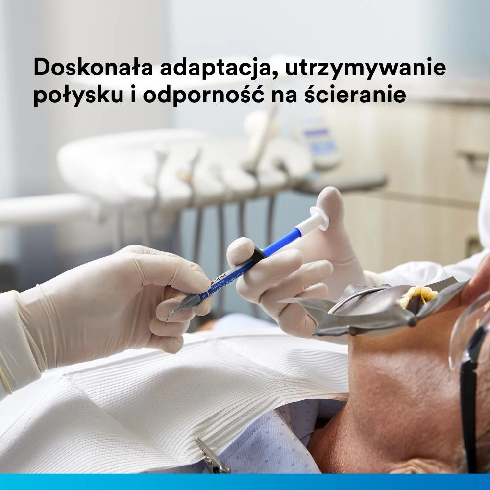 - Doskonale adaptuje się do ubytku, utrzymywanie połysku oraz odporność na zużycie.