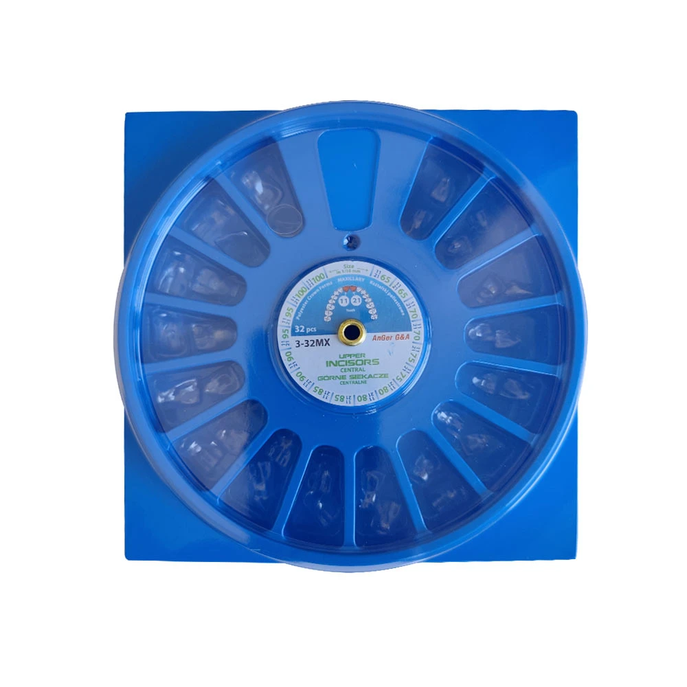 opakowanie: 32 kształtki na zęby sieczne górne w asortymencie: