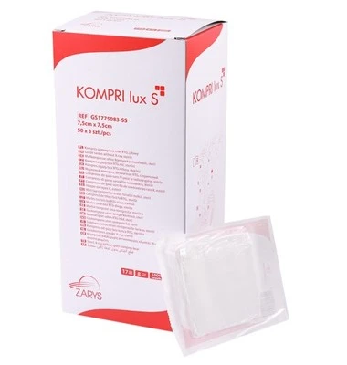 KOMPRI lux S - jałowe kompresy z gazy opatrunkowej (sterylizowane parą wodną).