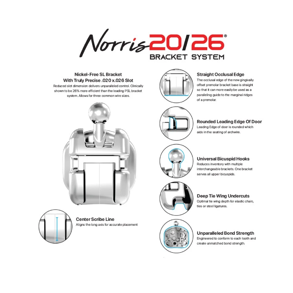 Norris 20/26® System to nowy wymiar skuteczności leczenia i zdecydowanie najbardziej zaawansowany postęp w pasywnej technologii samoligatyracji oraz formy łukowej do tej pory.
