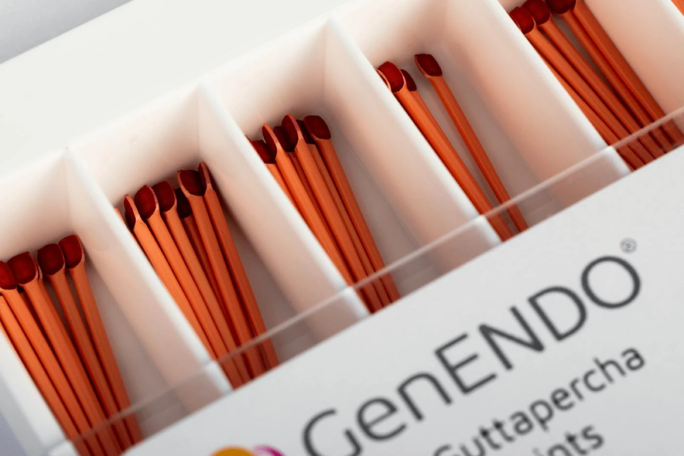 Ćwieki gutaperkowe przeznaczone do szczelnego wypełniania kanałów po opracowaniu pilnikami SC1.