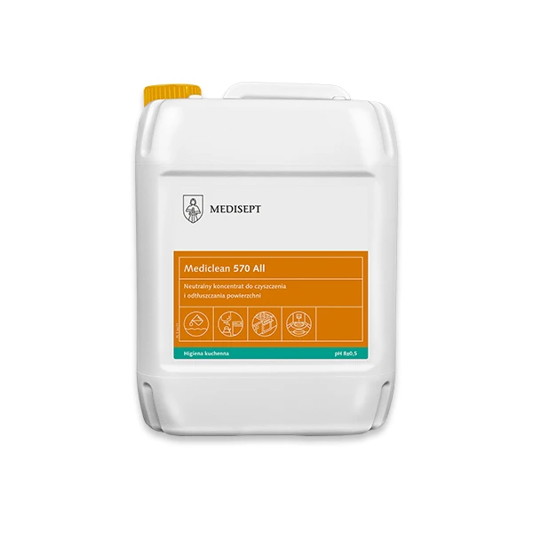 Mediclean 570 All to profesjonalny, neutralny koncentrat stworzony z myślą o skutecznym czyszczeniu i odtłuszczaniu różnorodnych powierzchni.
