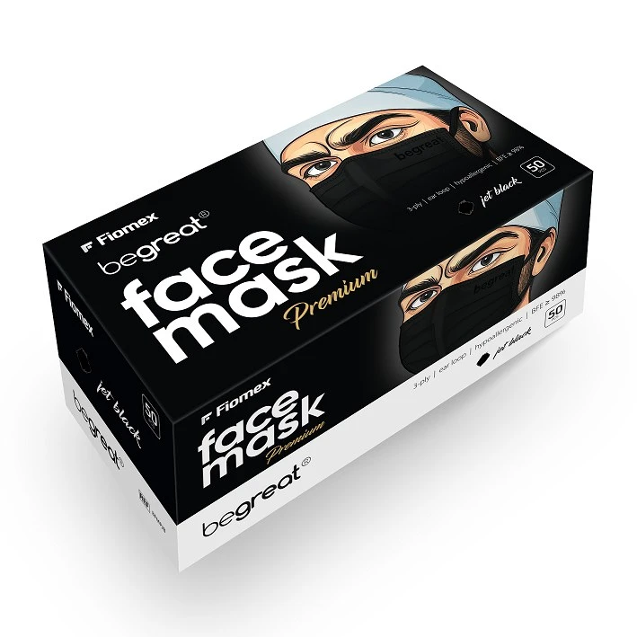 Maseczki Begreat IIR, 3-warstwowe, hipoalergiczne – jet black – 50 pcs