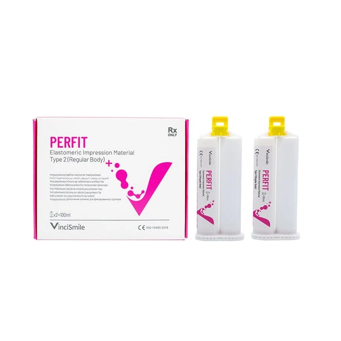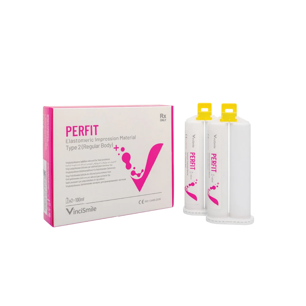 PERFIT Regular Body to silikon addycyjny (VPS – vinyl polysiloxane) o średniej lepkości, przeznaczony do wykonywania bardzo precyzyjnych wycisków stomatologicznych. Materiał jest dostarczany w kartuszach do mieszania w automatycznych dispenserach/mikserach.