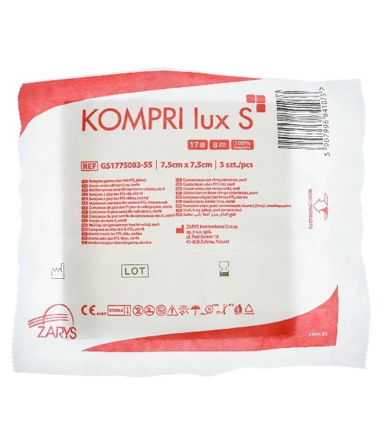 Kompresy jałowe 7,5x7,5cm 3szt. Kompri-Lux S 8w 17n (ZARYS) (50szt./op)