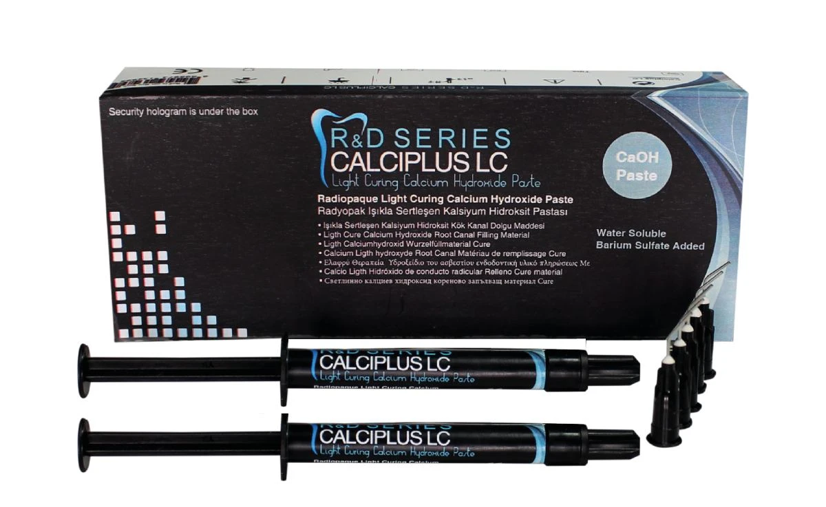 CALCIPLUS LC 2x2g jest to światłoutwardzalny wodorotlenek wapnia w paście. Przeznaczony jest do stosowania w trakcie leczenia stomatologicznego jako czasowe wypełnienie kanałów korzeniowych lub czasowe wypełnienie głębokich ubytków w metodzie pośredniego i bezpośredniego przykrycia miazgi.