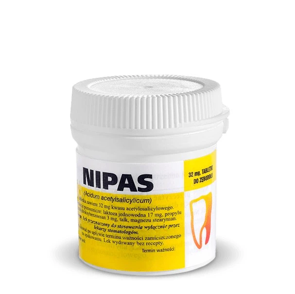 Nipas to specjalistyczny lek w postaci pałeczek (stożków) do wprowadzania bezpośrednio do zębodołu, przeznaczony do stosowania w stomatologii. Preparat wykazuje silne działanie przeciwbólowe i przeciwzapalne, wspierając naturalne procesy gojenia po ekstrakcji zęba. Dzięki miejscowemu uwalnianiu substancji czynnej, skutecznie chroni przed powikłaniami, leczy stany zapalne i przynosi szybką ulgę pacjentowi.