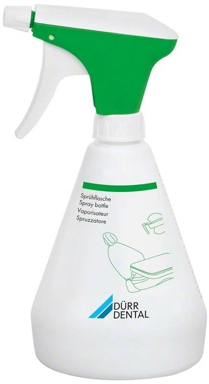 Funkcjonalna butelka sprayowa marki DÜRR o pojemności 500 ml została zaprojektowana z myślą o wygodnym i skutecznym stosowaniu środków dezynfekcyjnych w codziennej pracy gabinetów medycznych i stomatologicznych.